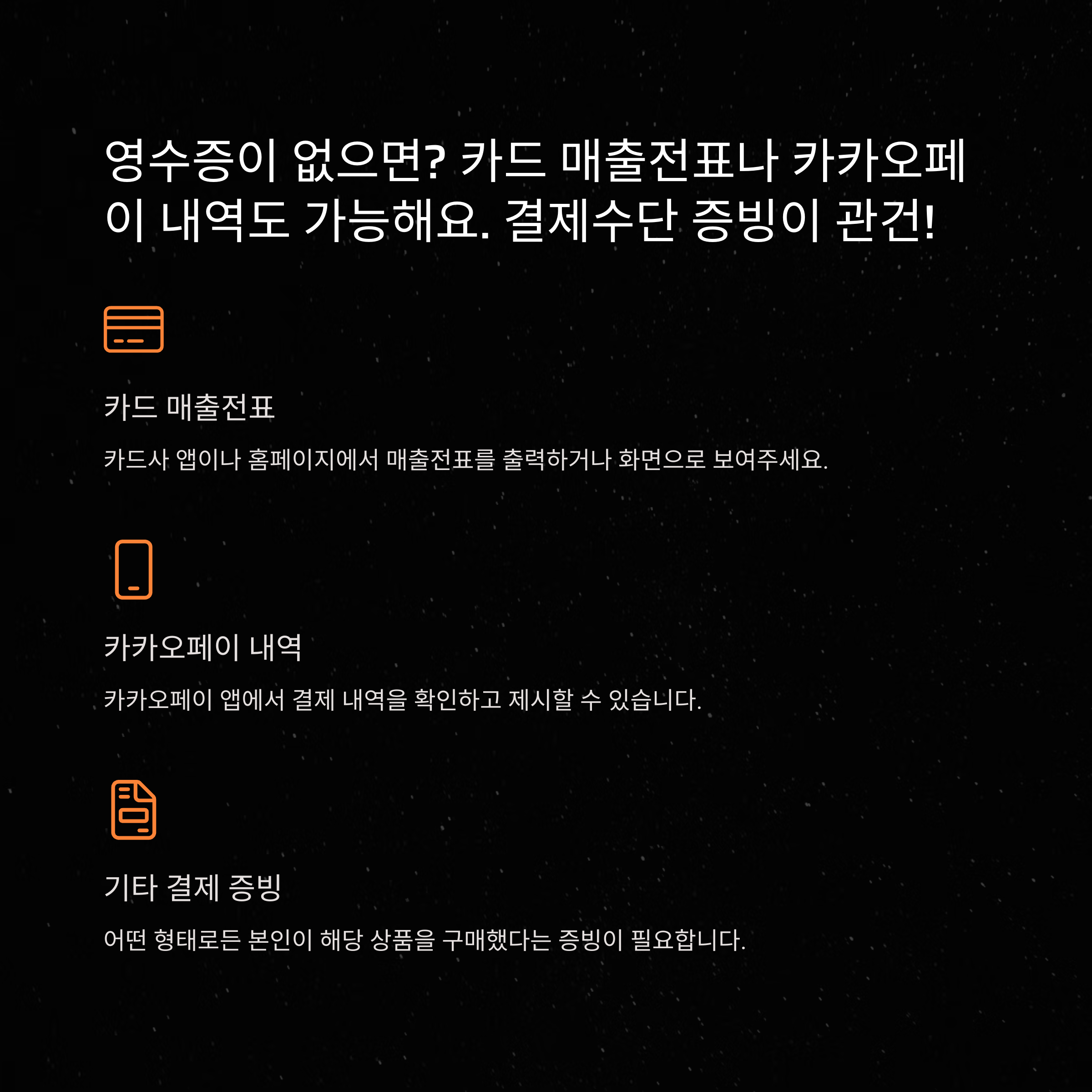- 영수증 필수 지참 (카드 결제 시 카드 영수증 가능)