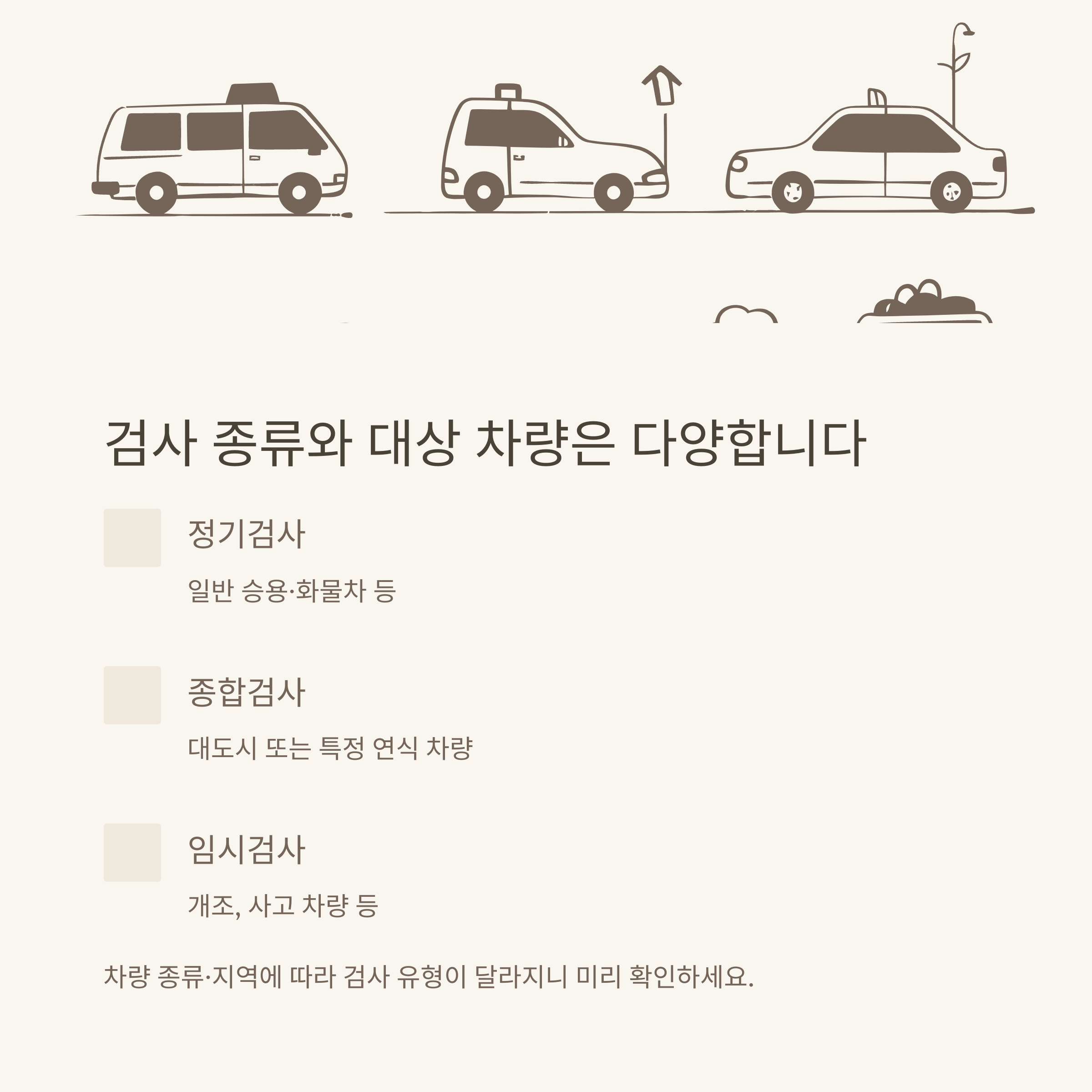 - 승용·승합·화물차, 대형/소형차별 검사 주기 다름