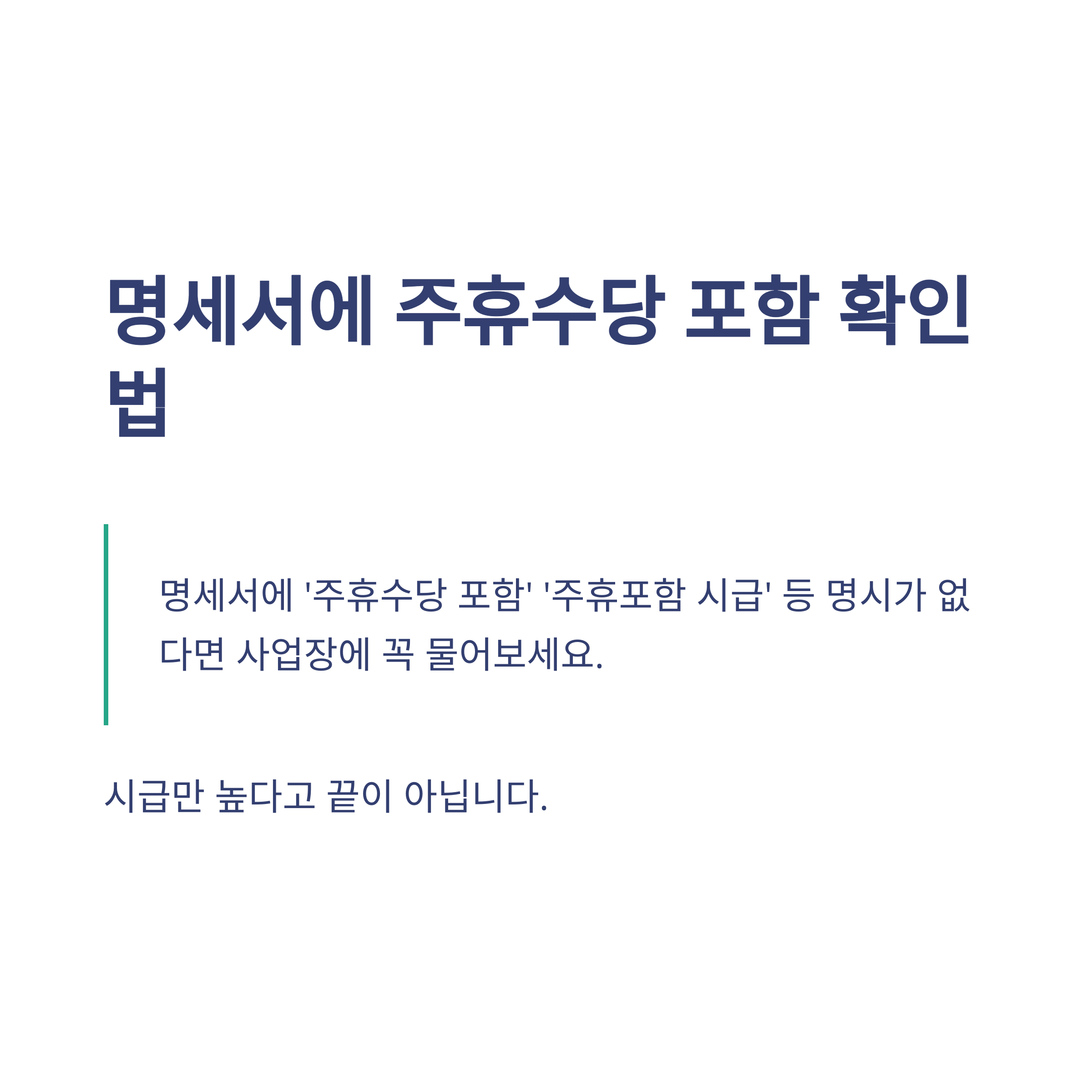 | 명세서 표기 | ‘주휴수당 포함’ 문구 | 표기가 없다면 사업장 문의 |