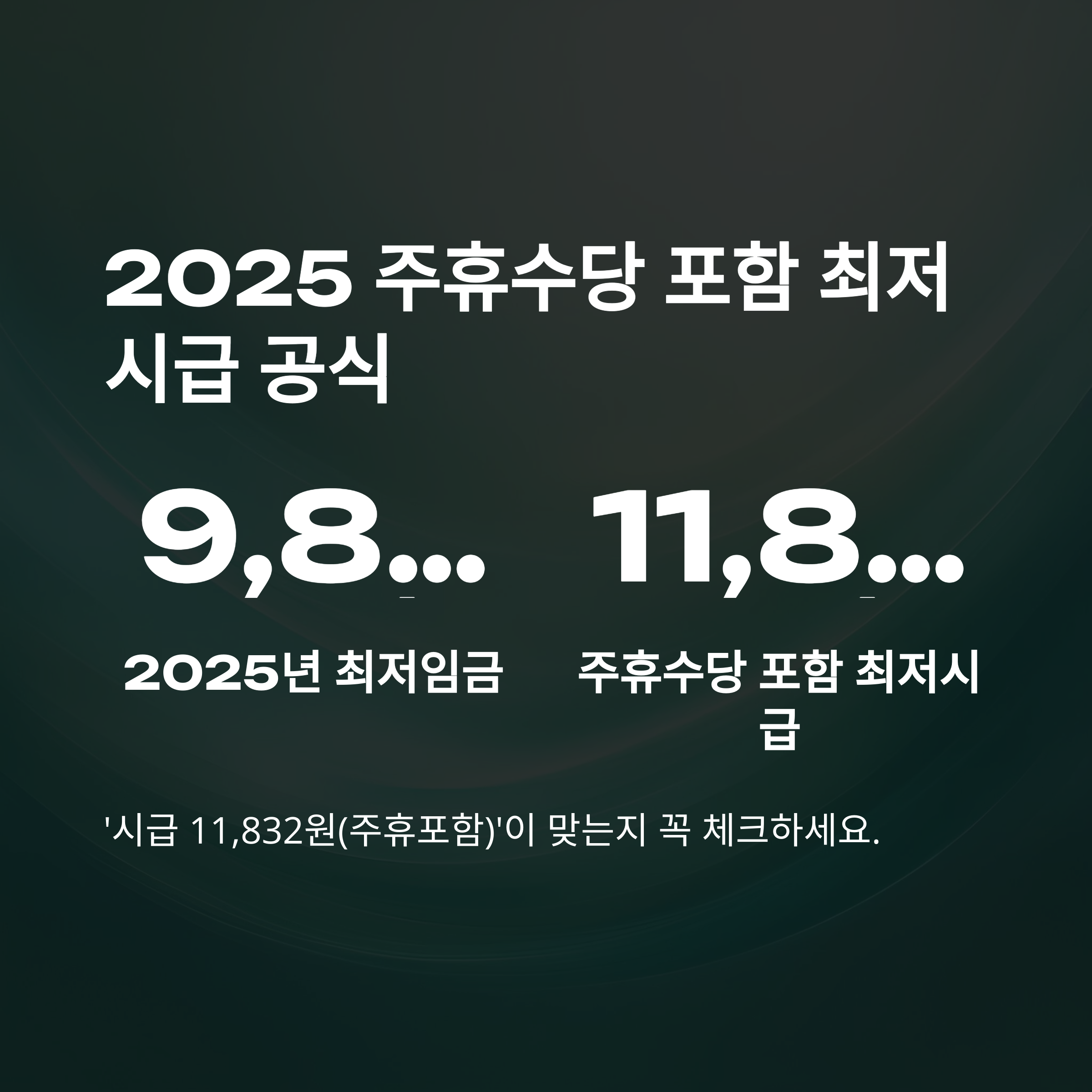 | 최저시급 | 9,860원 | 2025년 확정 |